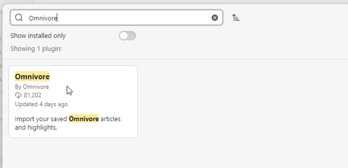 - After the installation is successful, enable the Omnivore plugin, by toggling it on;