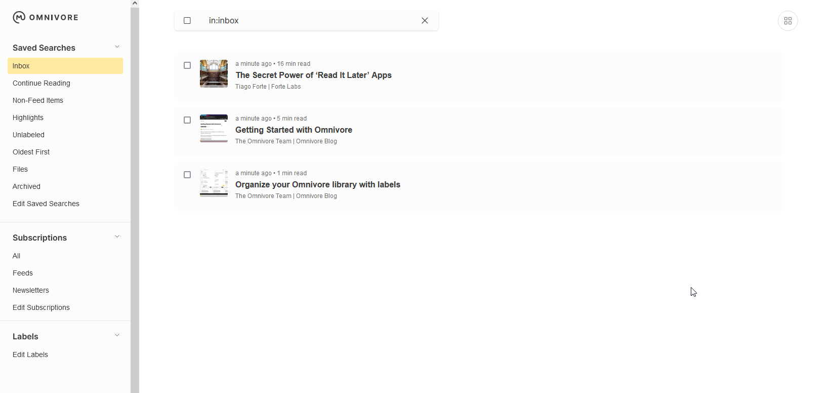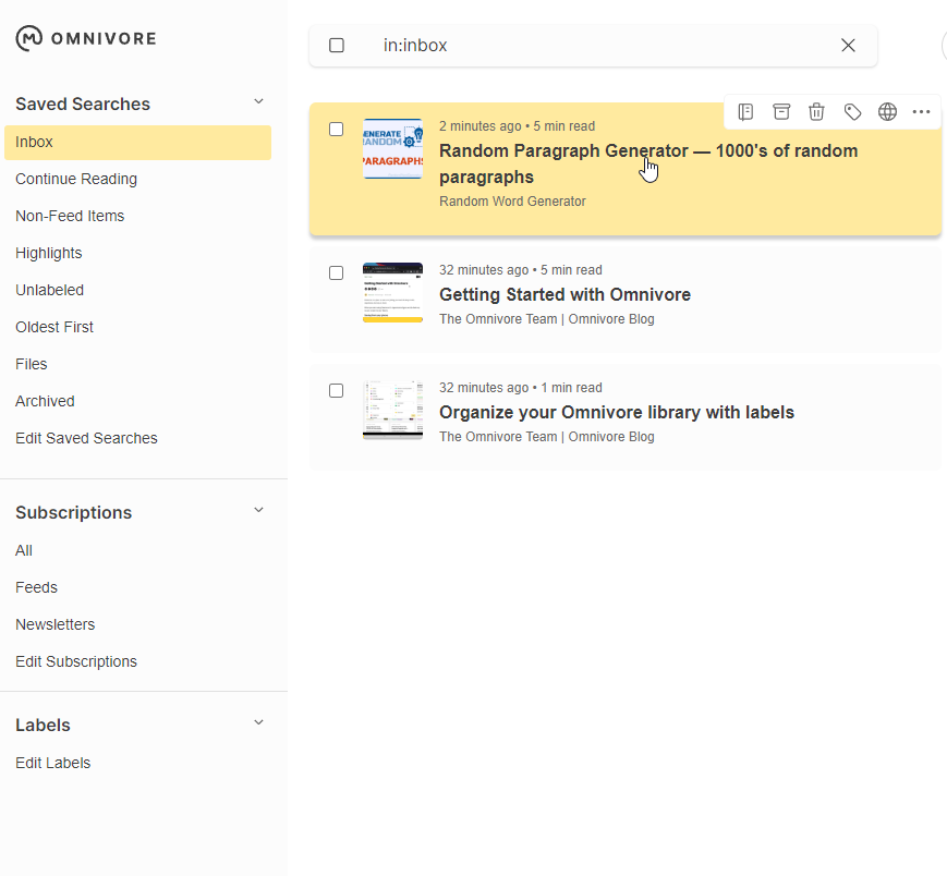 - When you go back to https://omnivore.app/ the article now appears in the inbox;